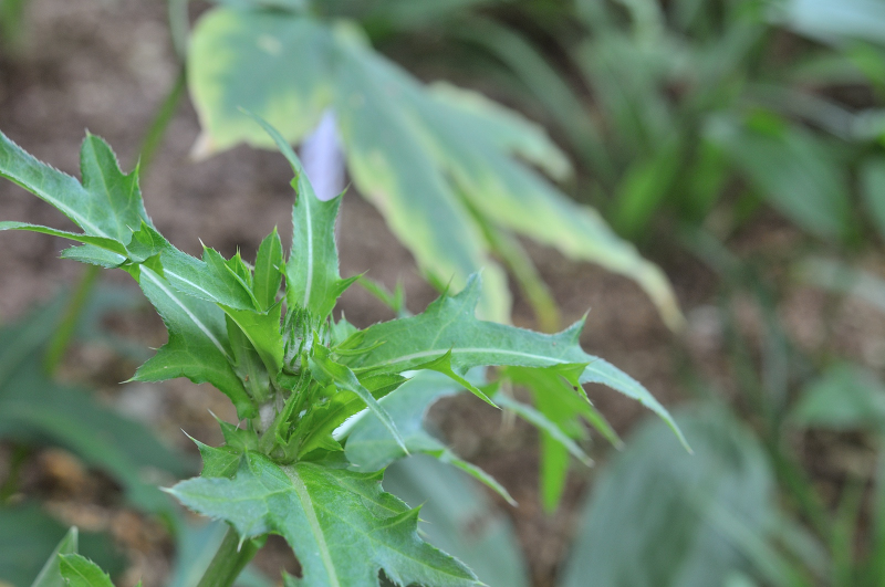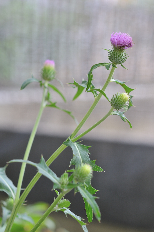 アザミは葉っぱにトゲがあって痛いのですが、子供の頃から馴染みのある花なので育てています。