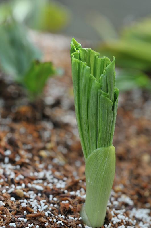 大きな葉同士が重ならないようにする為に地下茎が伸びるので、鉢植えでは育てられません。