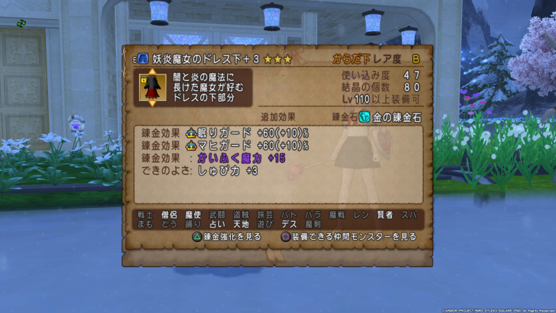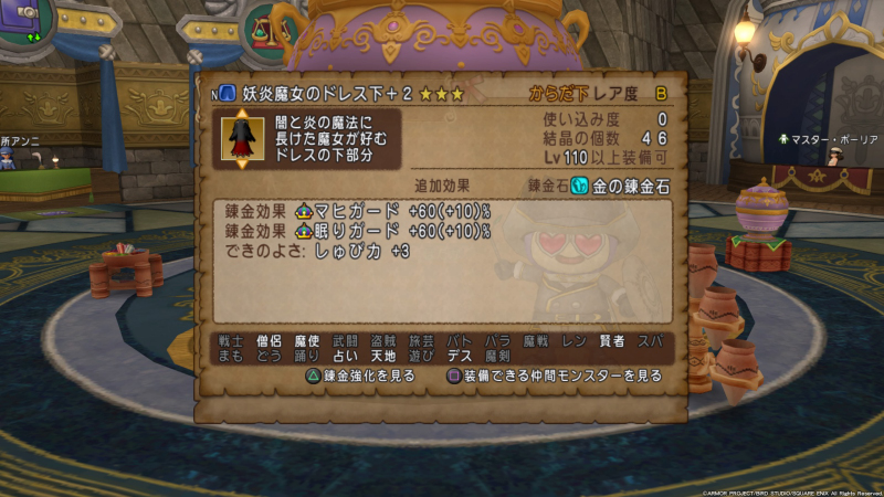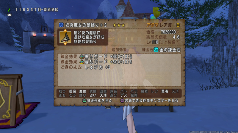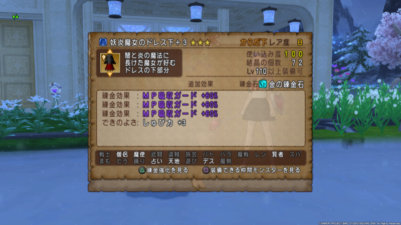 これは、上で紹介したMP吸収ガードで埋め尽くされた後に、意地になってまた同じ錬金の付いた装備を購入して錬金しました。