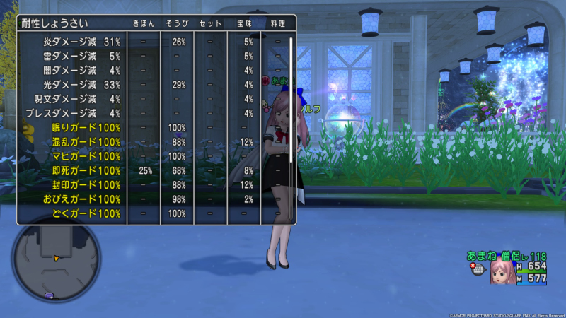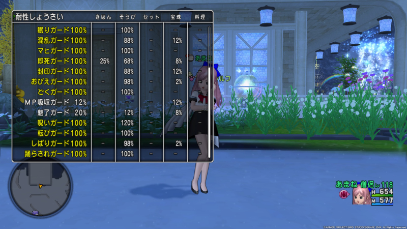 眠り・マヒ・毒は70%の装備を買ったので、聖守護者と合わせて100%なので宝珠を使う必要がないです。