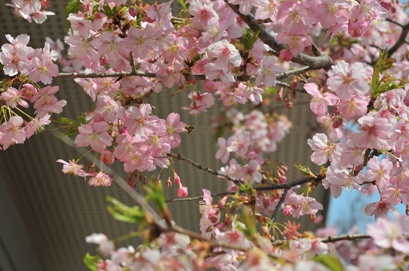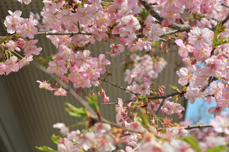 この河津桜には、メジロも良く来ています。
