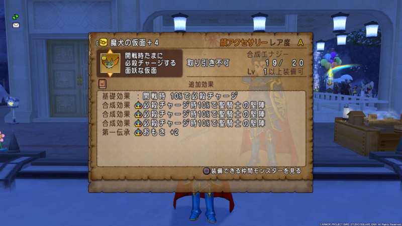 死神のピアスでも良いですが、私は堅陣が程よくついてくれる、仮面がお勧めです。