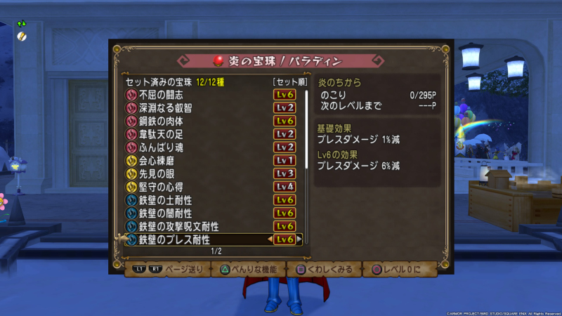 鎧上は、闇や土耐性が良いかなと思いましたが、戦いを重ねると対処は出来るので、属性耐性は、骨パラにはそれほど重要ではないと感じました。