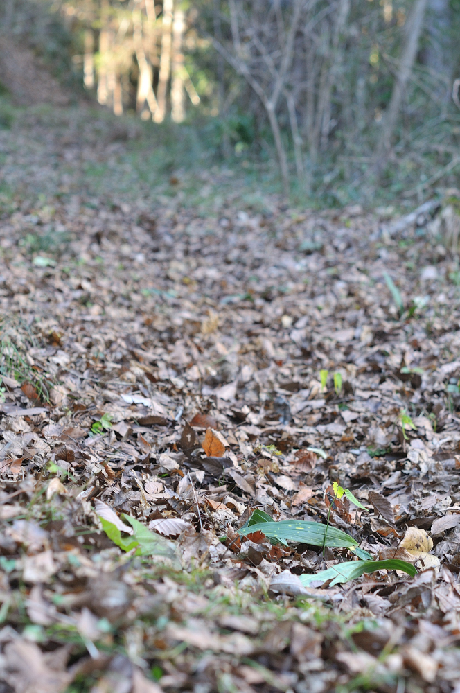 笹が生い茂り、道は枯葉や枯枝で覆われました。