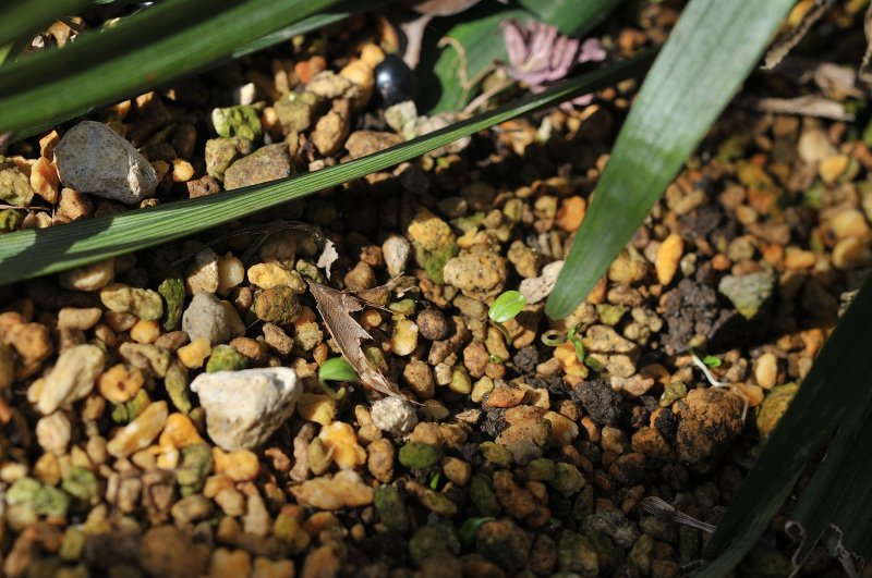 去年こぼれた種から、芽が出てきました。