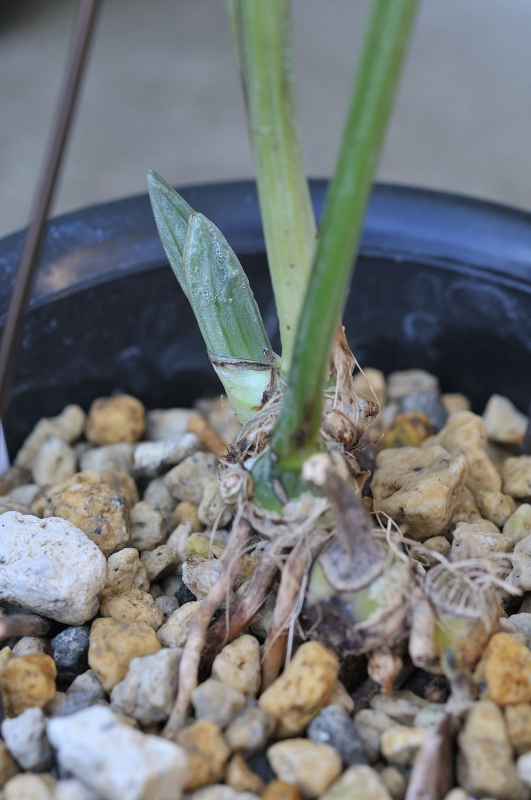 上の写真の新芽の、一番反対側にあるバックバルブから、もう1芽伸びていました。