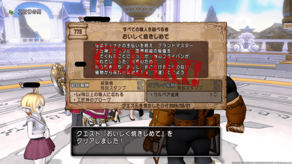 毎日職人依頼を受けているので、職人の経験値が入るのは嬉しいですね。