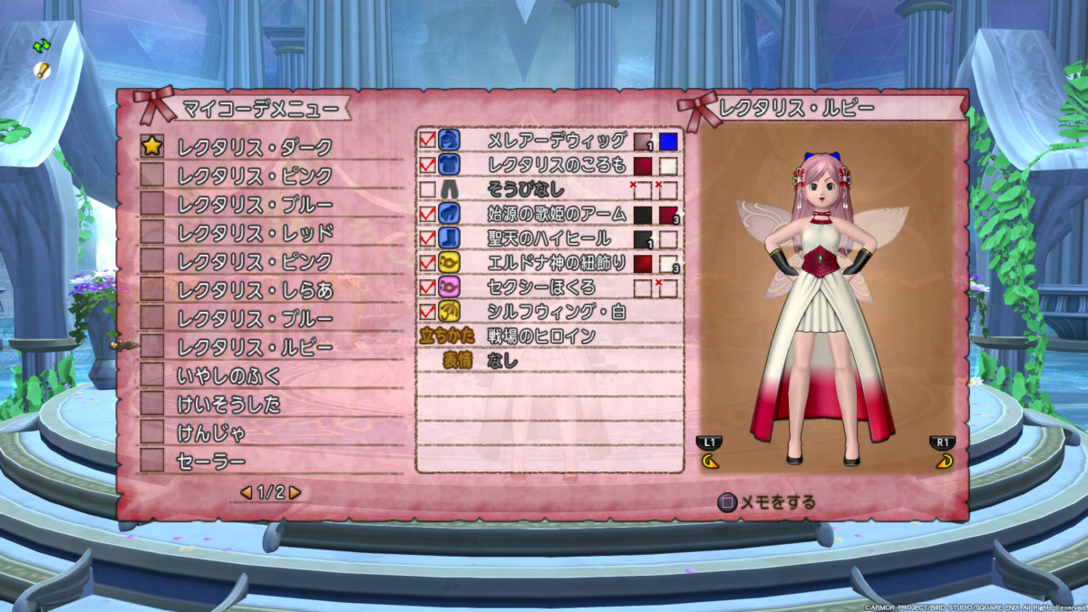 レクタリスの衣は、ノーマルが白色ですから、基本的に白系が似合うんですよね。