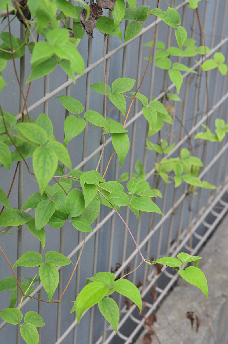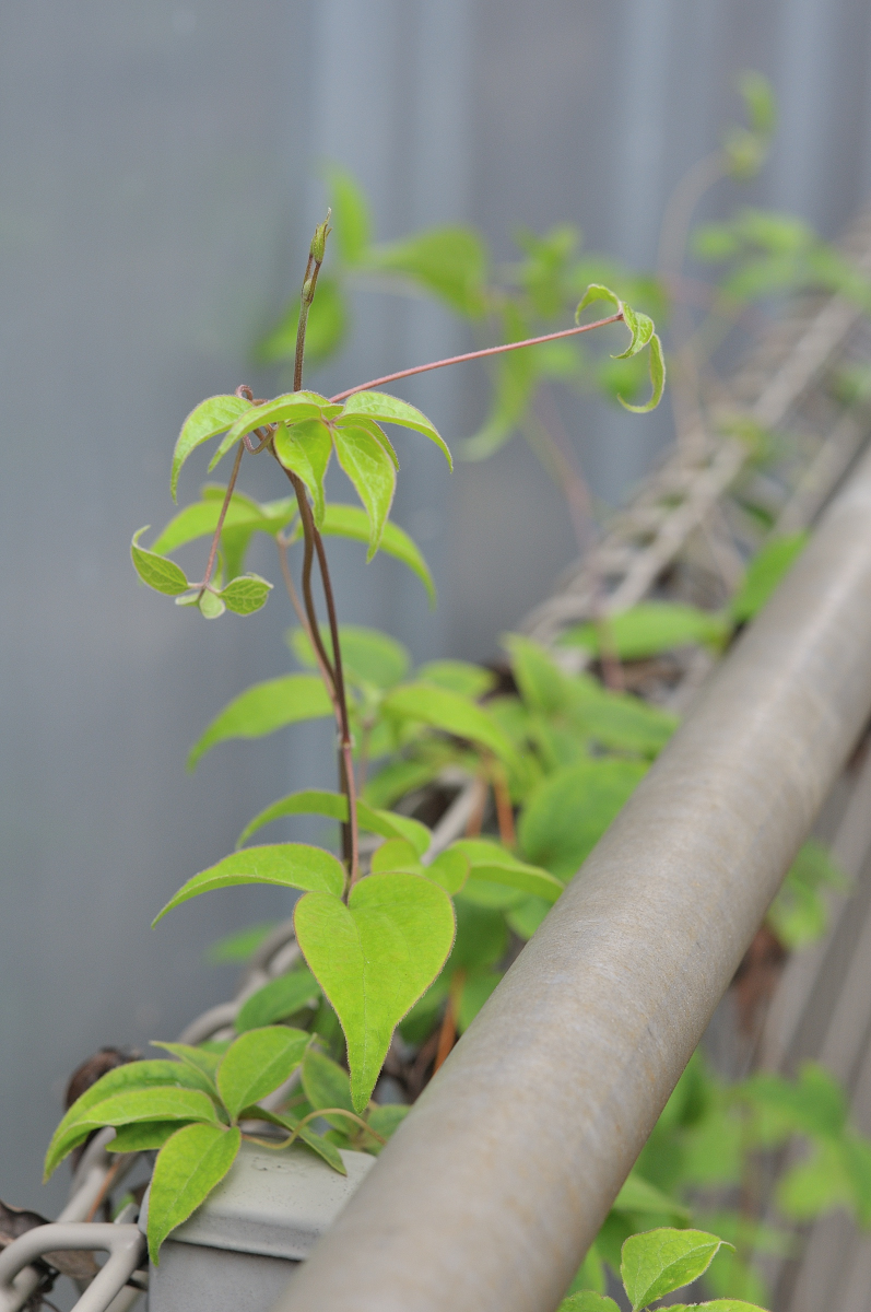 さて、フェンスに絡ませていたカザグルマが元気を取り戻して、ツルが伸びて来ました。
