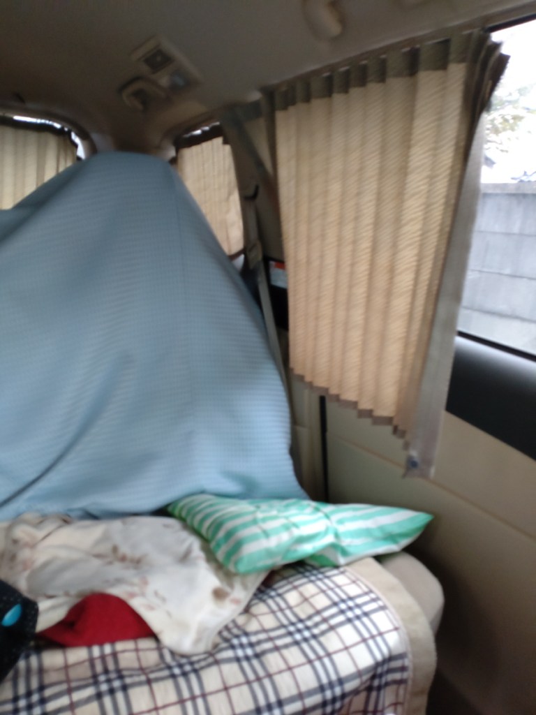 前日に、山の麓に行って仮眠が出来るよう、後部座席をフラットに出来る8人乗り用にしました。