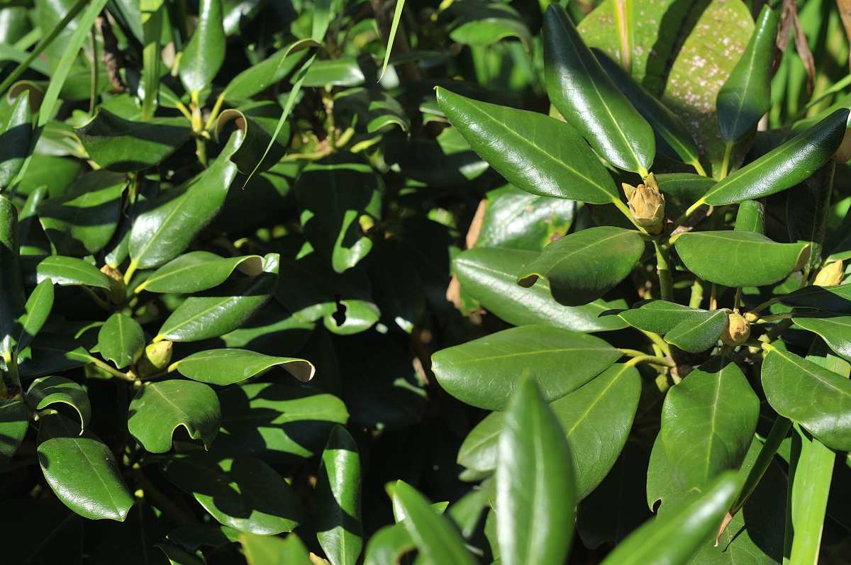 隠岐諸島に自生するオキシャクナゲがありますが、これはホンシャクナゲの変種らしく、葉っぱが丸っこいのが特徴です。
