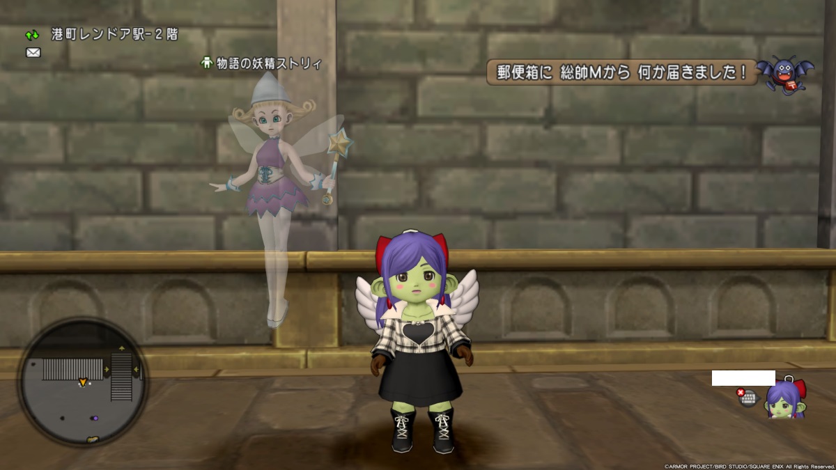 物語スキップ出来る場所は、バシッ子でレンドア北・駅に飛び、そのまま2階に上がって右側にこの妖精ちゃんがいます。