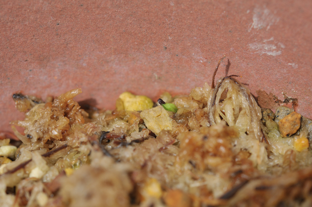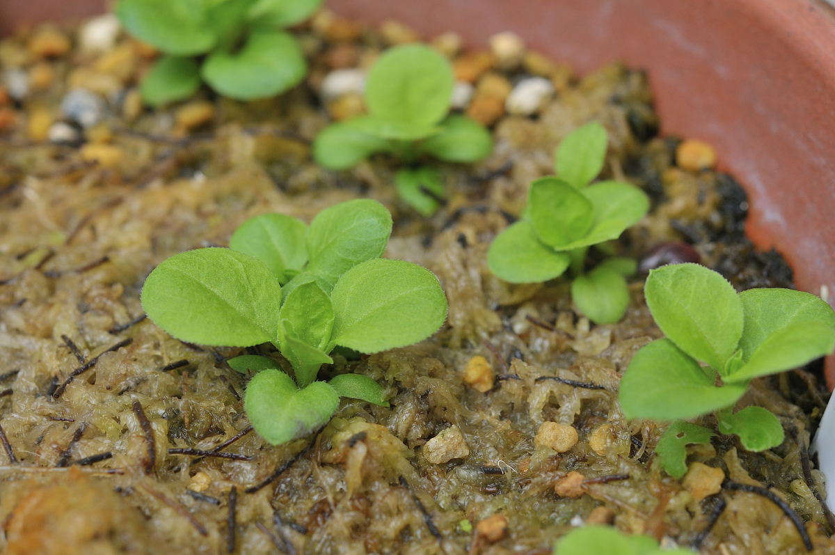 鹿沼土小粒・桐生砂・蝦夷砂の混合用土の上部に、ミズゴケを引いています。