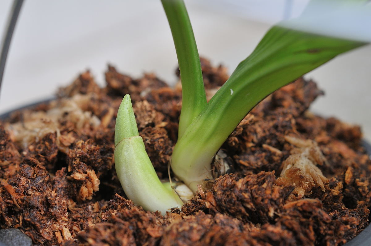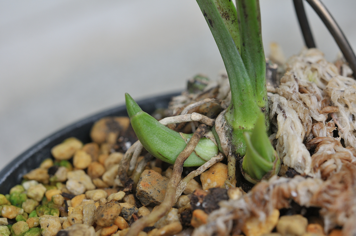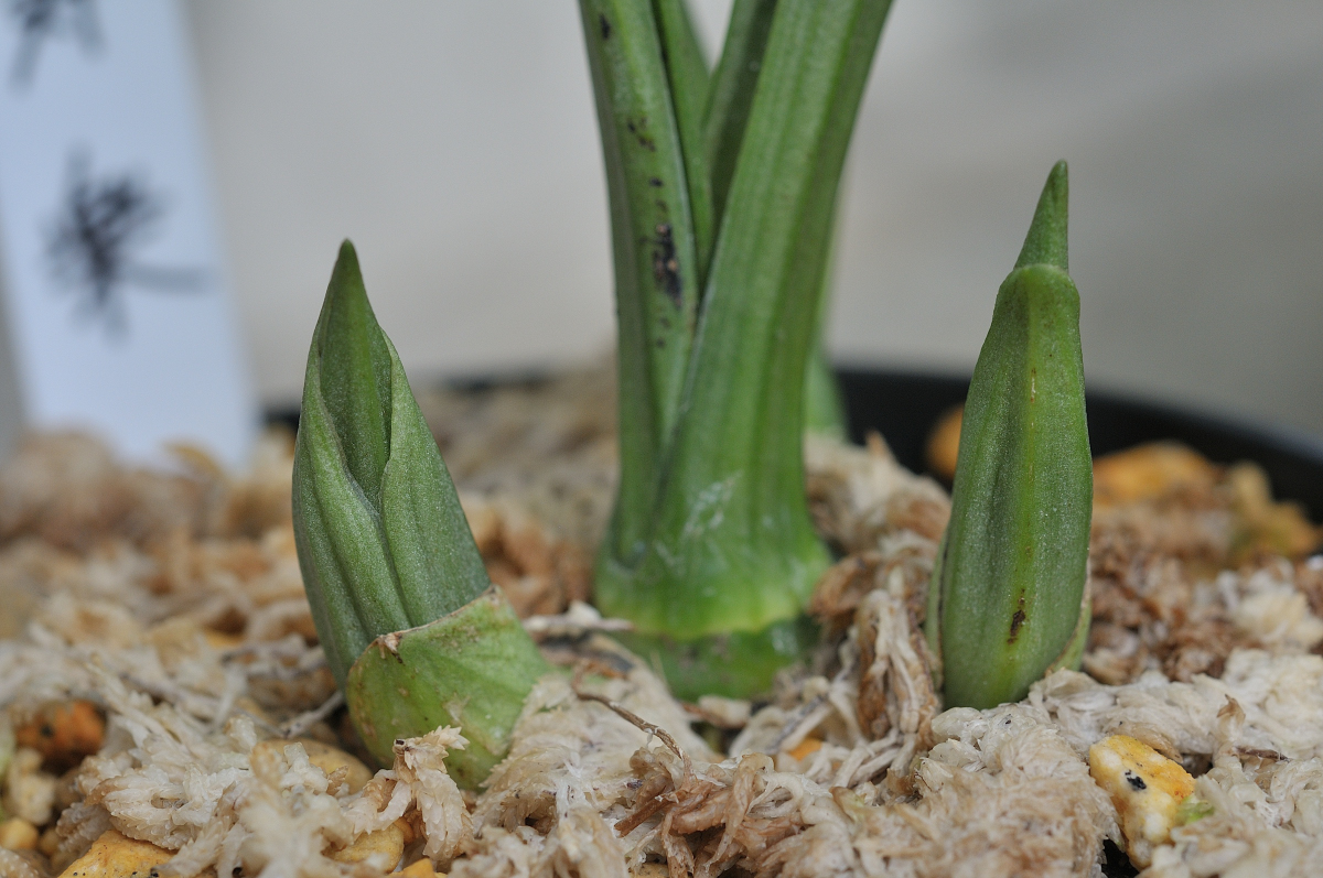 W芽で、バルブ手前にも新芽があります。