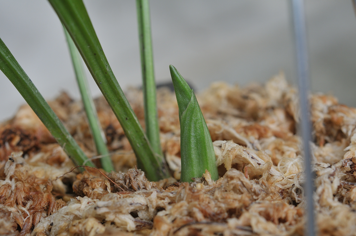 庭に植えているコオズエビネのような、かなり太くて大きい新芽です。