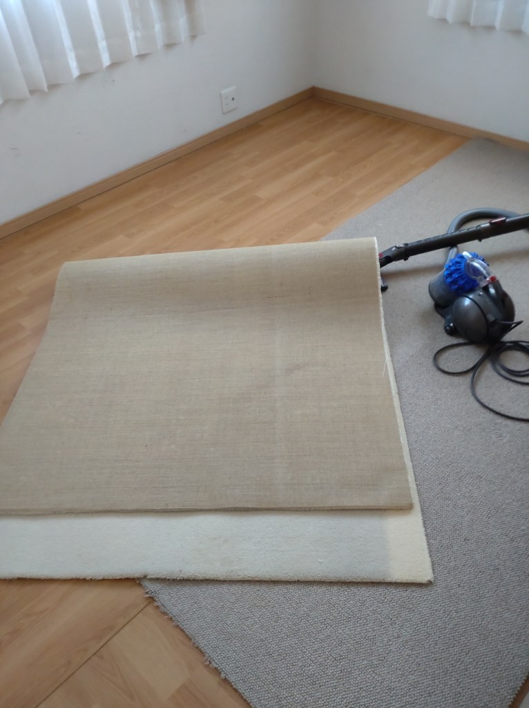 ラグマットやカーペットの表裏を掃除機で綺麗にしてから、仮置き場に移動。