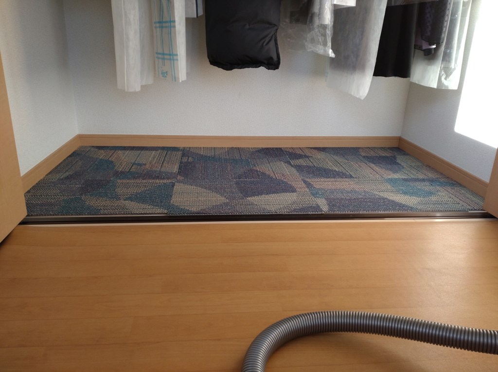 大掃除ですからタイルカーペットをとって、掃除機をかけた後、クイックルワイパーで拭きます。