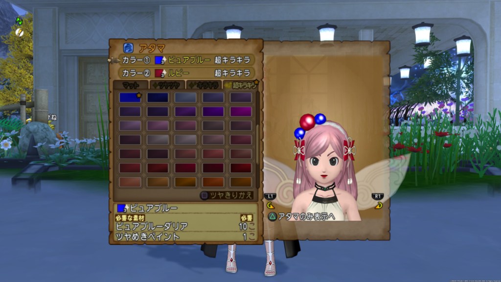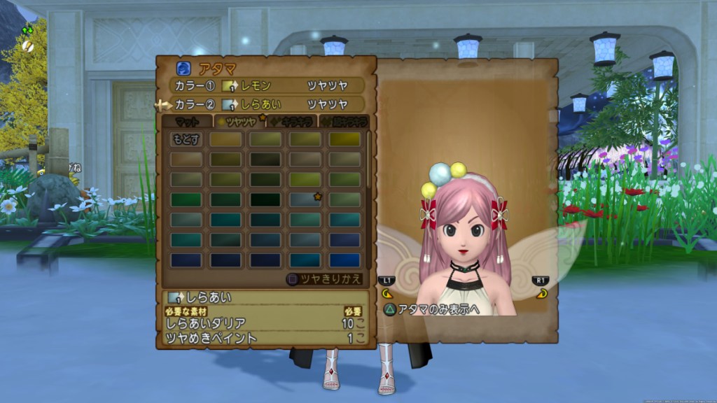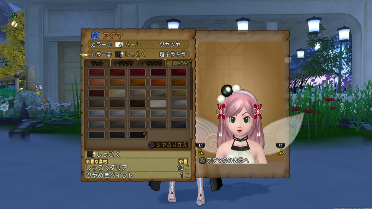 妖精の姿見で色々いじりましたが、カチューシャの部分は染色出来ませんでした。