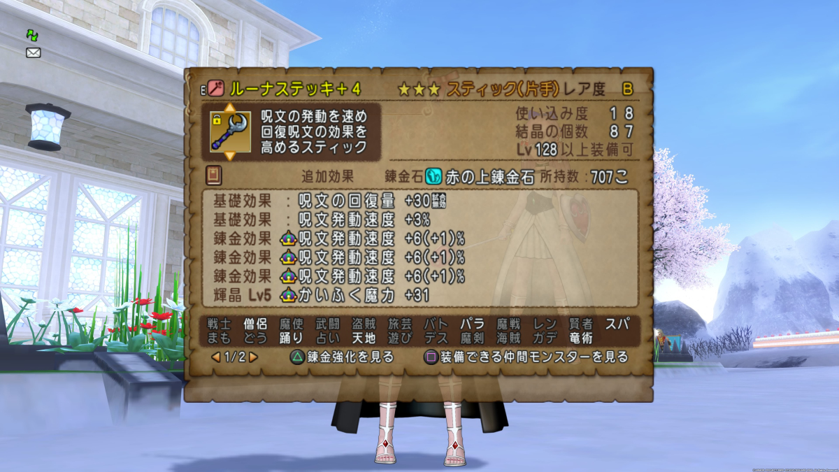 メイン女性キャラの僧侶は、輝晶Lv5にしています。