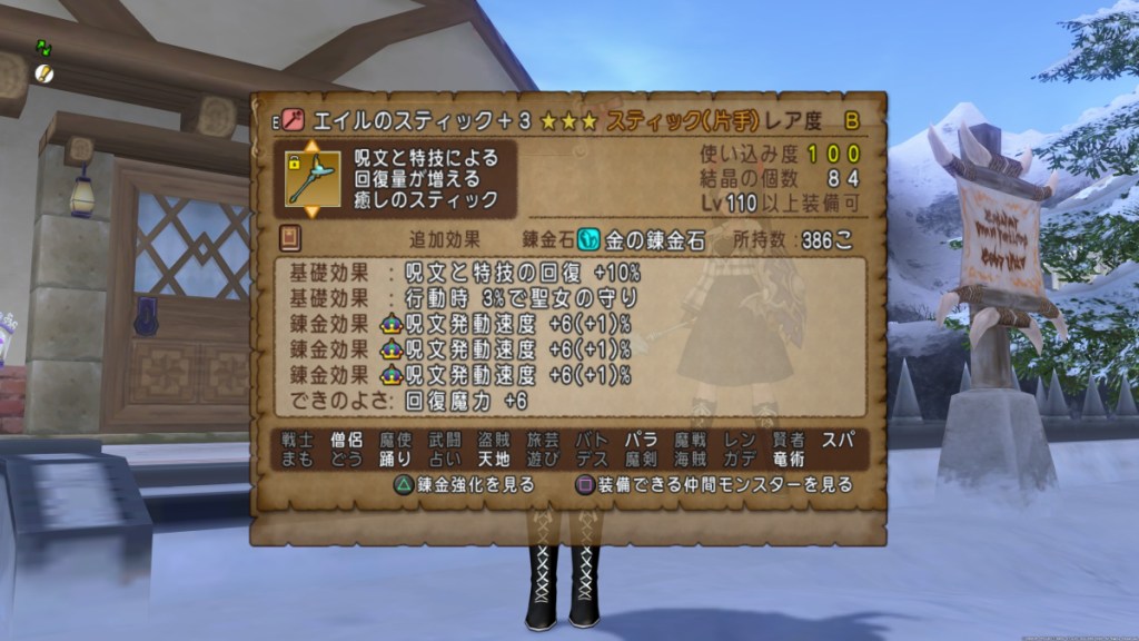 エイルのスティックの回復10%アップって、かなり強いんですよね。
