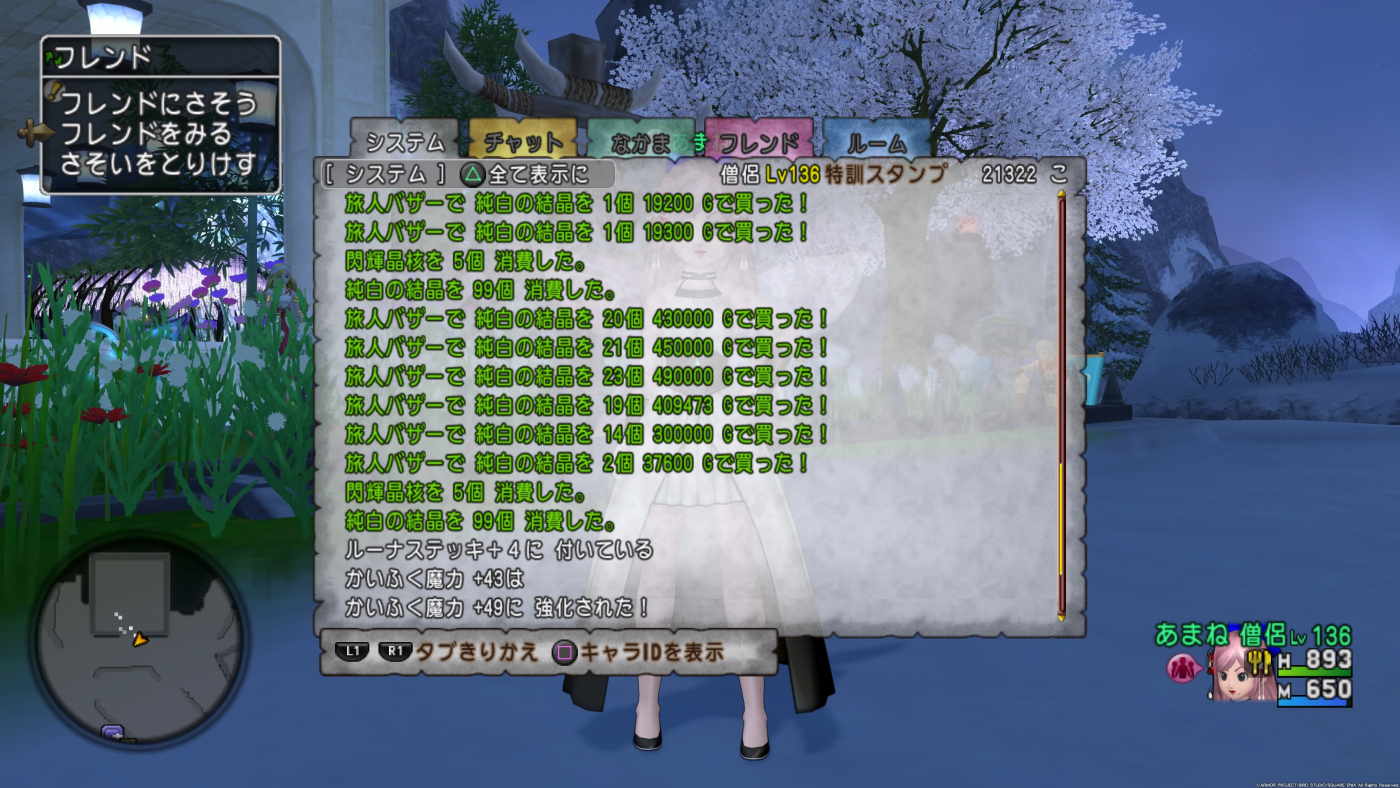 値段も下がったので、私と同じように輝晶Lvを上げている方がいるのかもしれませんね。