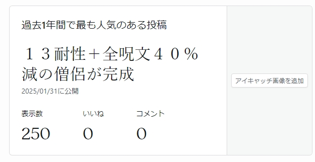 さて、アンテイク装備での13耐性僧侶の記事ですが、その後もコンスタントに記事を読まれていて、とても嬉しいです。