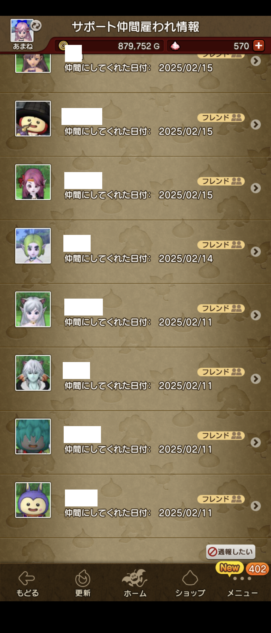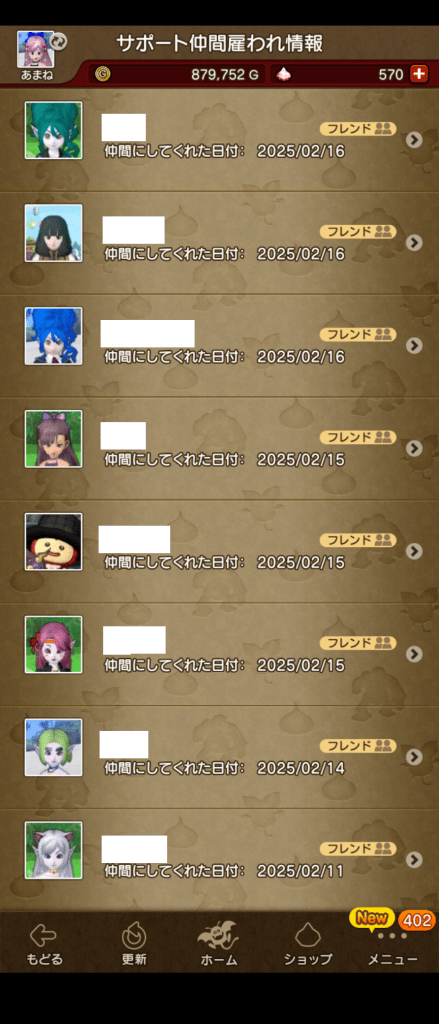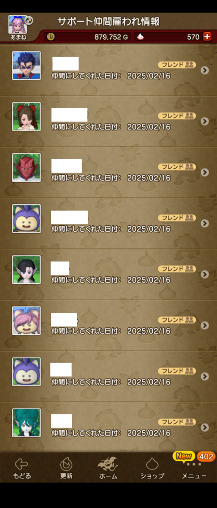 アップデート後や、今回のようにレベル上限解放があった時には、常に上限の20人から雇われている状況です。