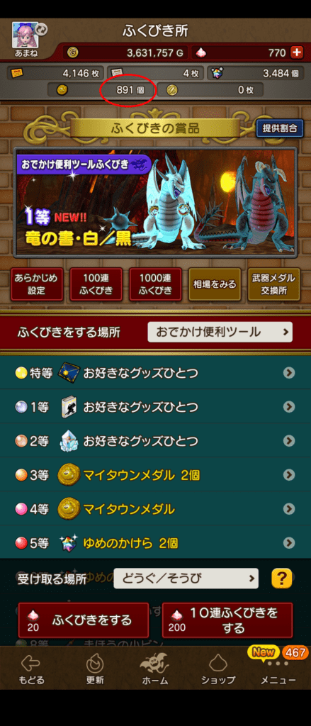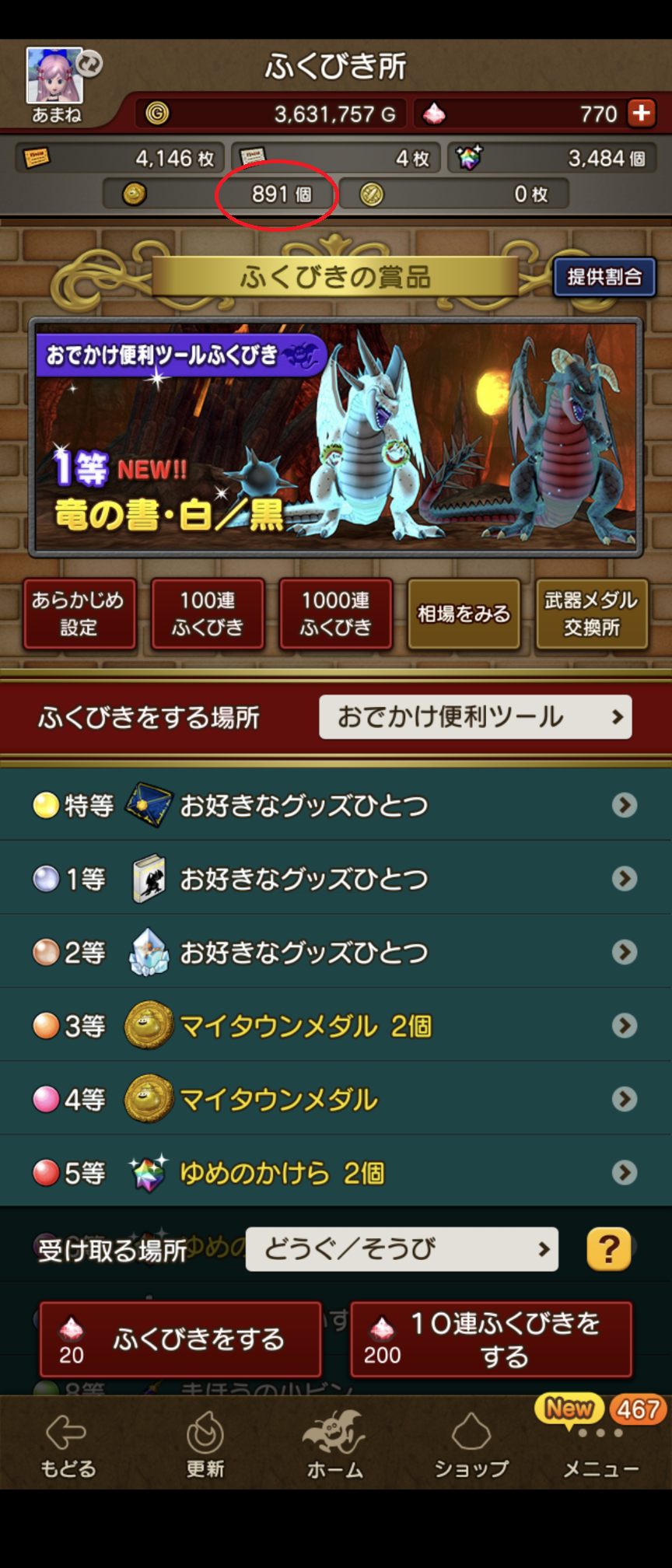 さて、私のドラゴンクエストⅩ・冒険者のおでかけ超便利ツールで貯めていたマイタウンメダルが、1000枚まで残り100枚ちょっとになりました。