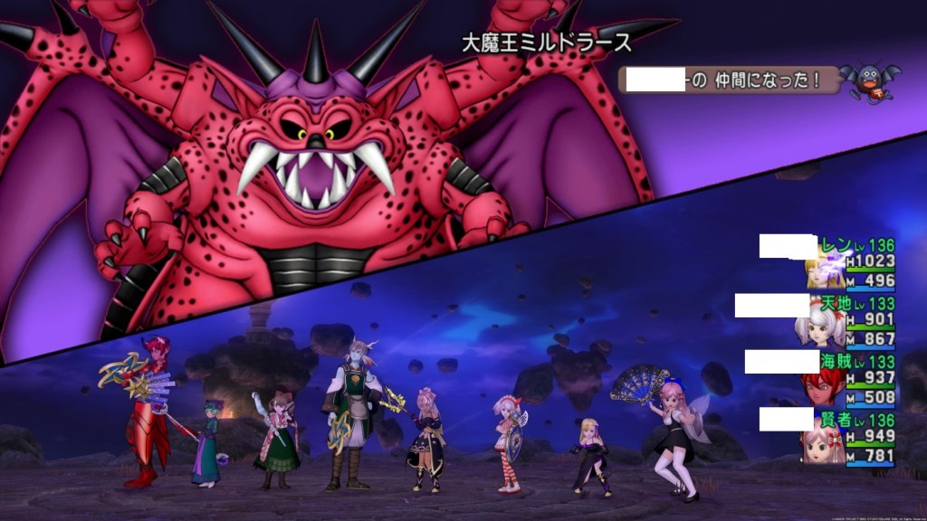 正直興味のなかったミルドラース、8人パーティーだけ行こうと思いました。