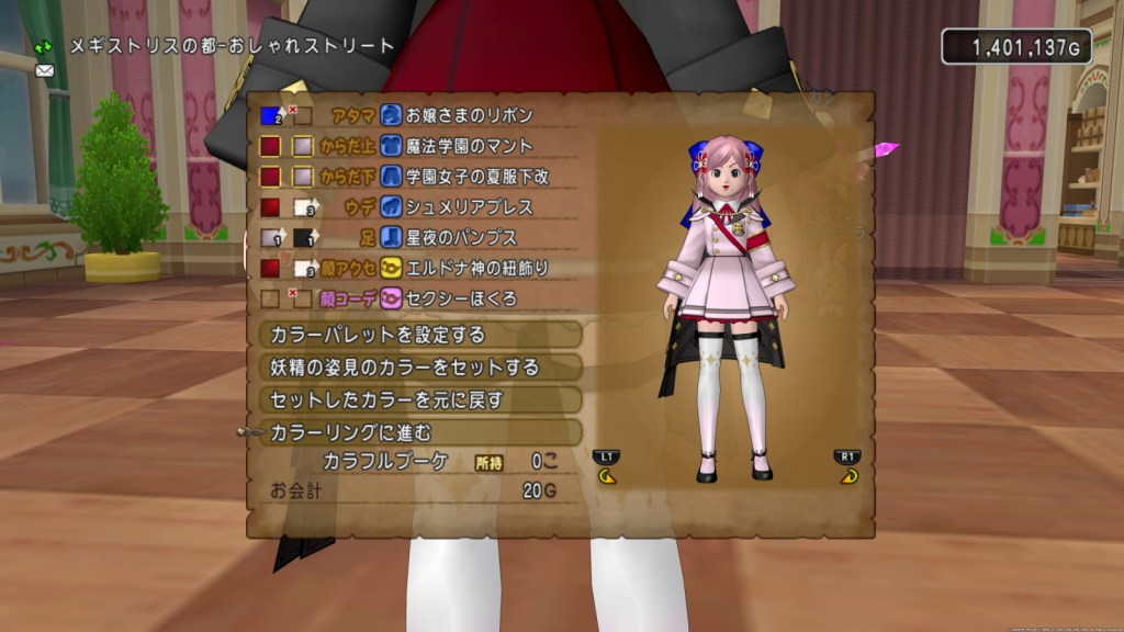 魔法学園とアスフェルド学園と言う事で、10代女子のコーデを想定し、やっぱりピンク系が似合うかなと思いました。