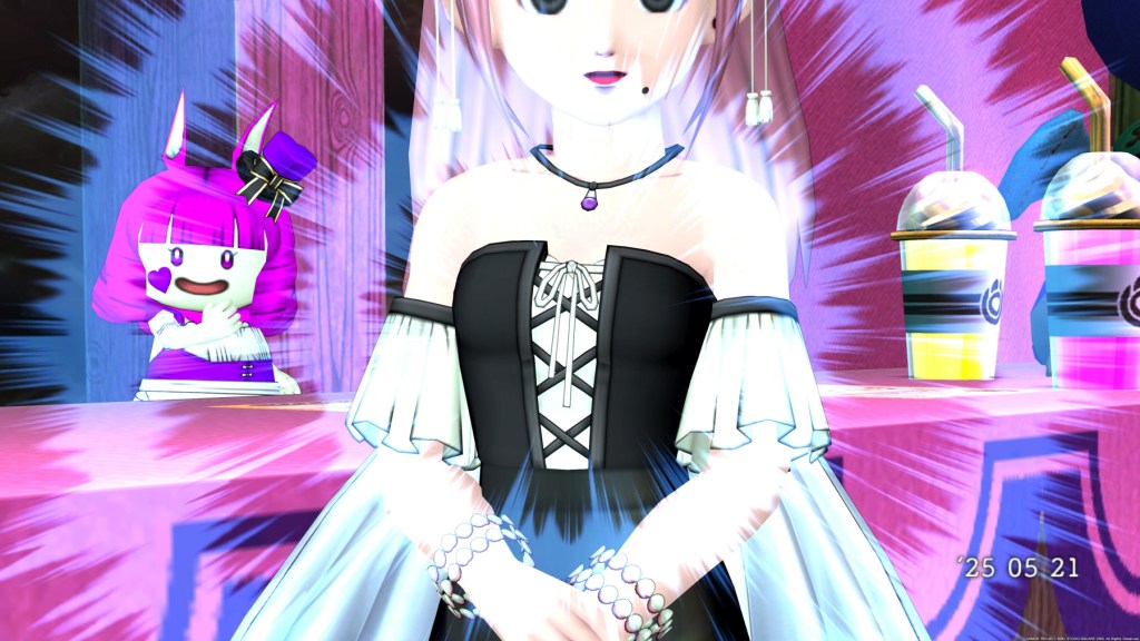 いつもの服に、酒場主人のドレス上とシュメリア装備のドレアですので、今更細かくは紹介しません。