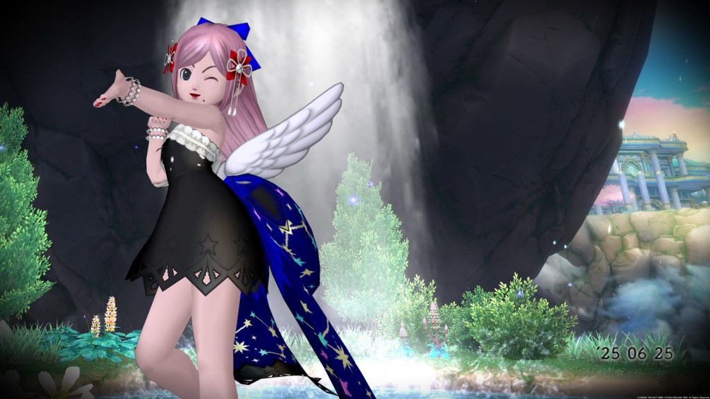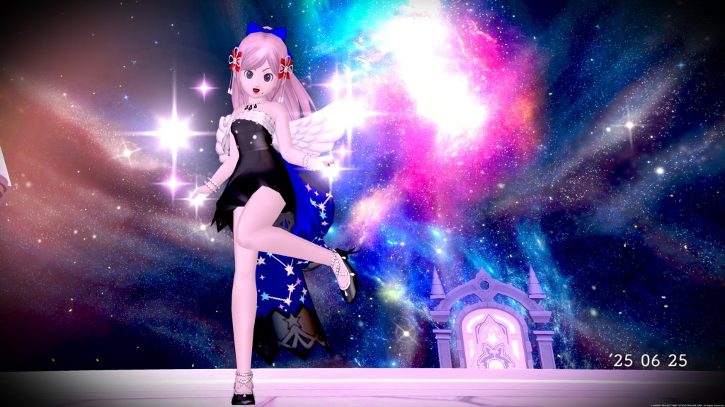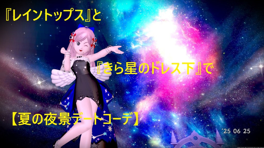 露出を抑える為に星夜のパンプスと迷いましたが、夏なんだからと言う理由でレインシューズに決まりました。