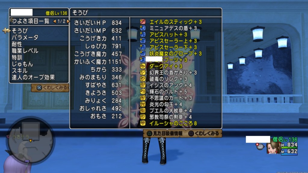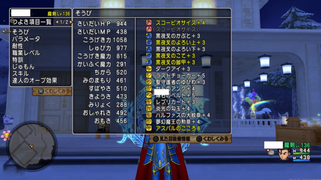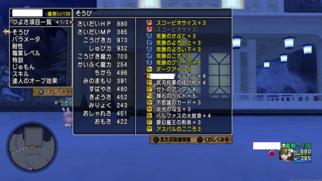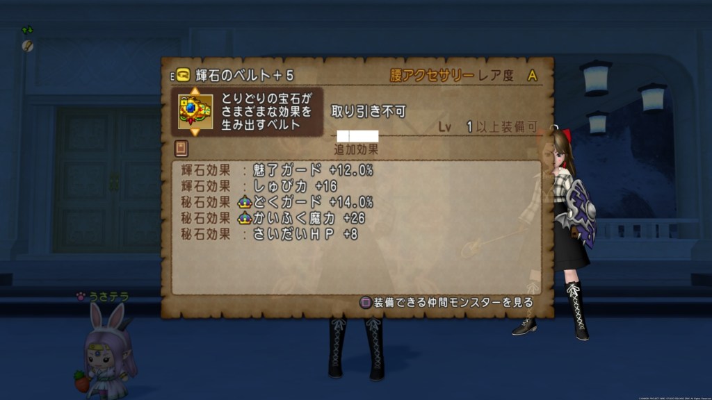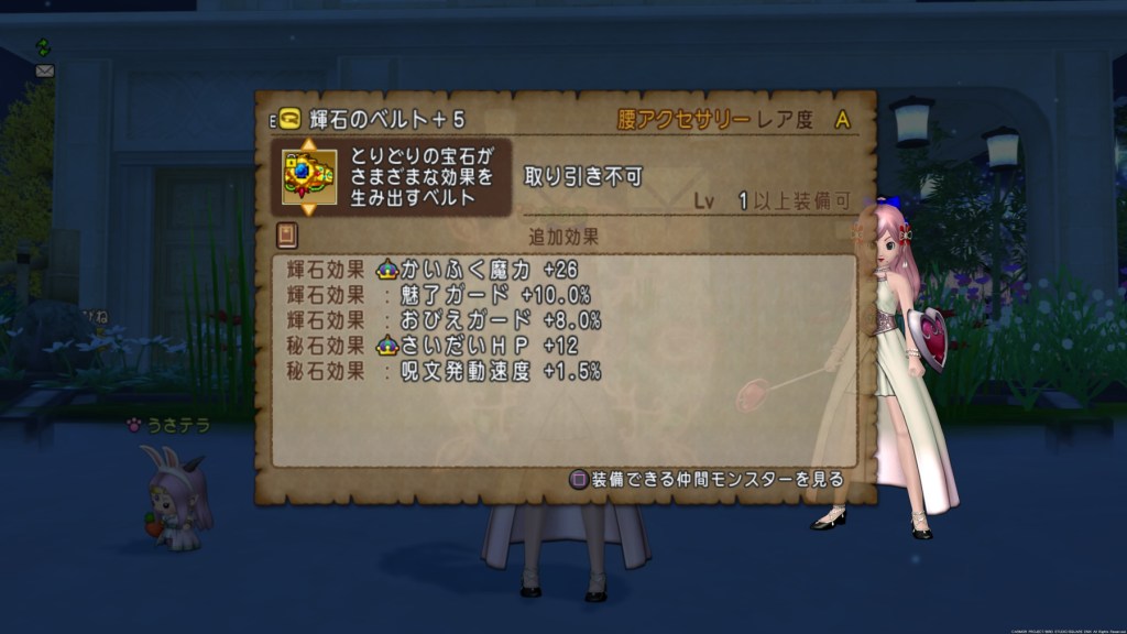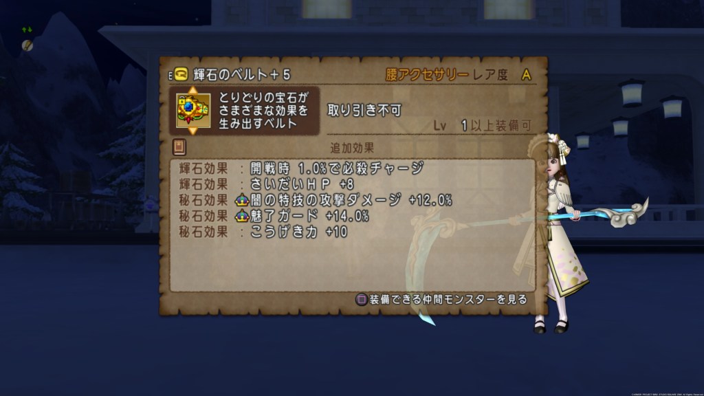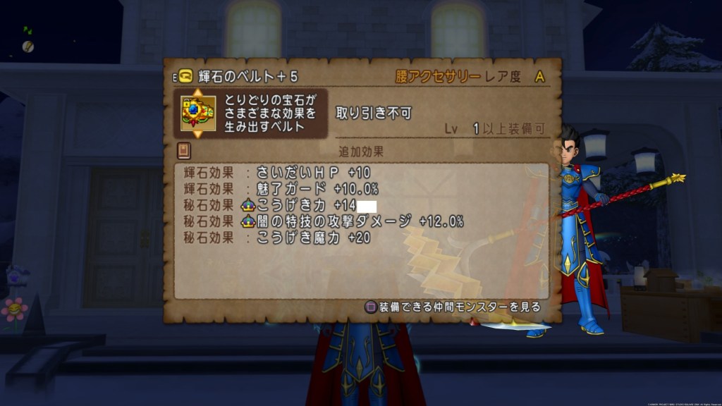 魔剣士の輝石のベルトの効果は、HP・力・魔力・魅了・闇攻撃で決まりかな。