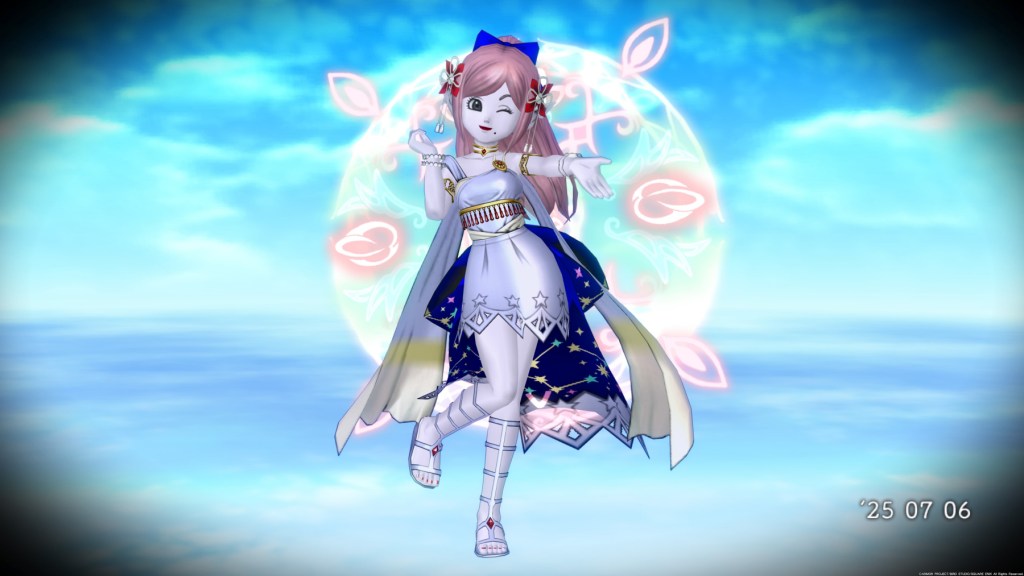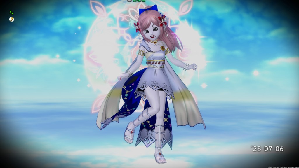 天女と言えば、ドラクエ10の種族の中ではエルフが近いかなと思いまして、じゃあエルフ専用ドレアにしました。