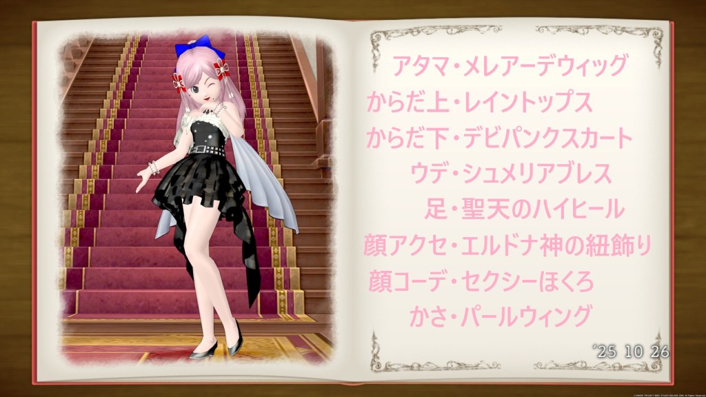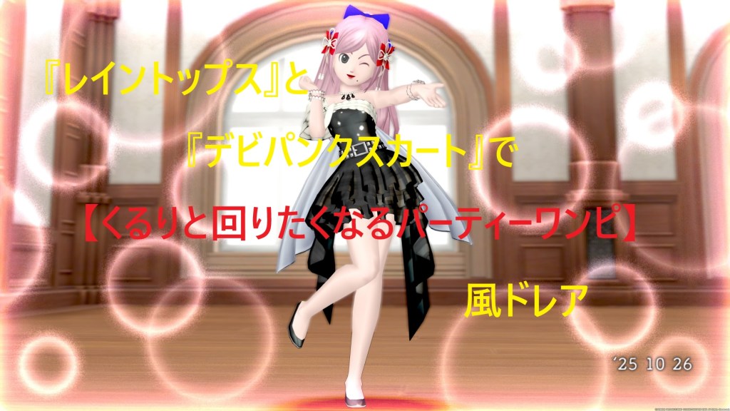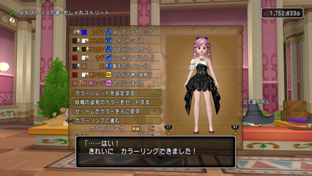 そういえば、先日実装されたおしゃれ装備のデビパンクセットですが、スカートがかなり良かったので、メイン女性にも購入しようと思い妖精の姿見をポチポチいじっていました。