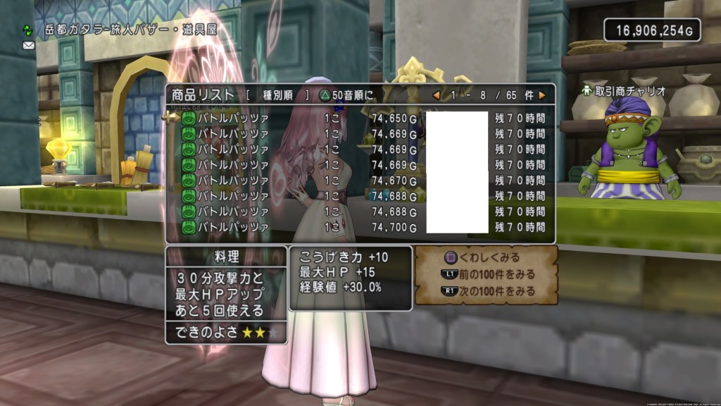 こうも値上がりすると自分で作りたい所ですが、私は料理職人をやっているキャラがいないので、作れません。
