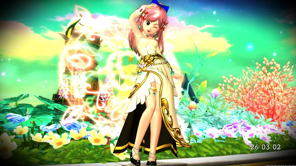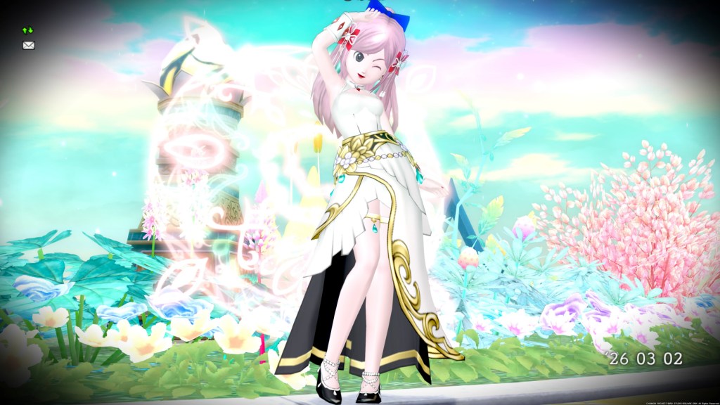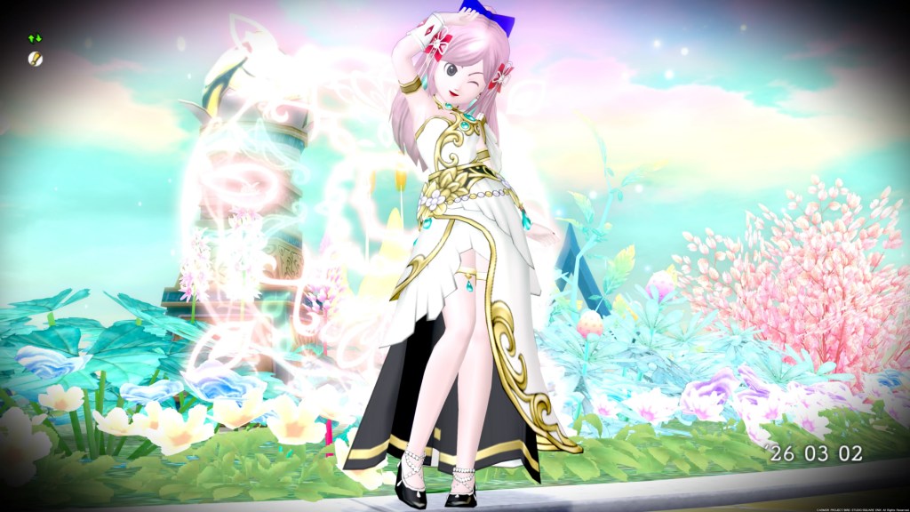 ニニエルザドレス上に、光創神の御衣下を組み合わせるとどうかなと思って、比べてみました。