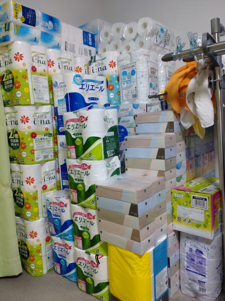 今日も今月上旬に続いて、トイレットペーパー・ティッシュを、購入上限まで追加で買ってきました。