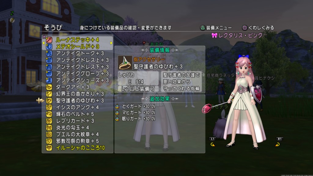 右指枠に断罪の指輪や将軍系の指輪、左指枠に聖守護者の指輪などの耐性系の指輪が現実的に良いかと。